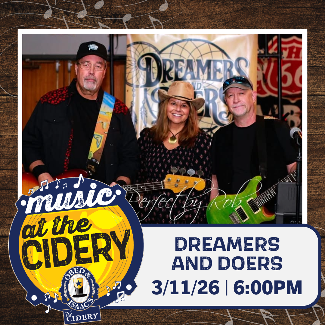 Read more about Music at the Cidery - Dreamers and Doers on 3/11/2026 6:00 pm - 8:00 pm